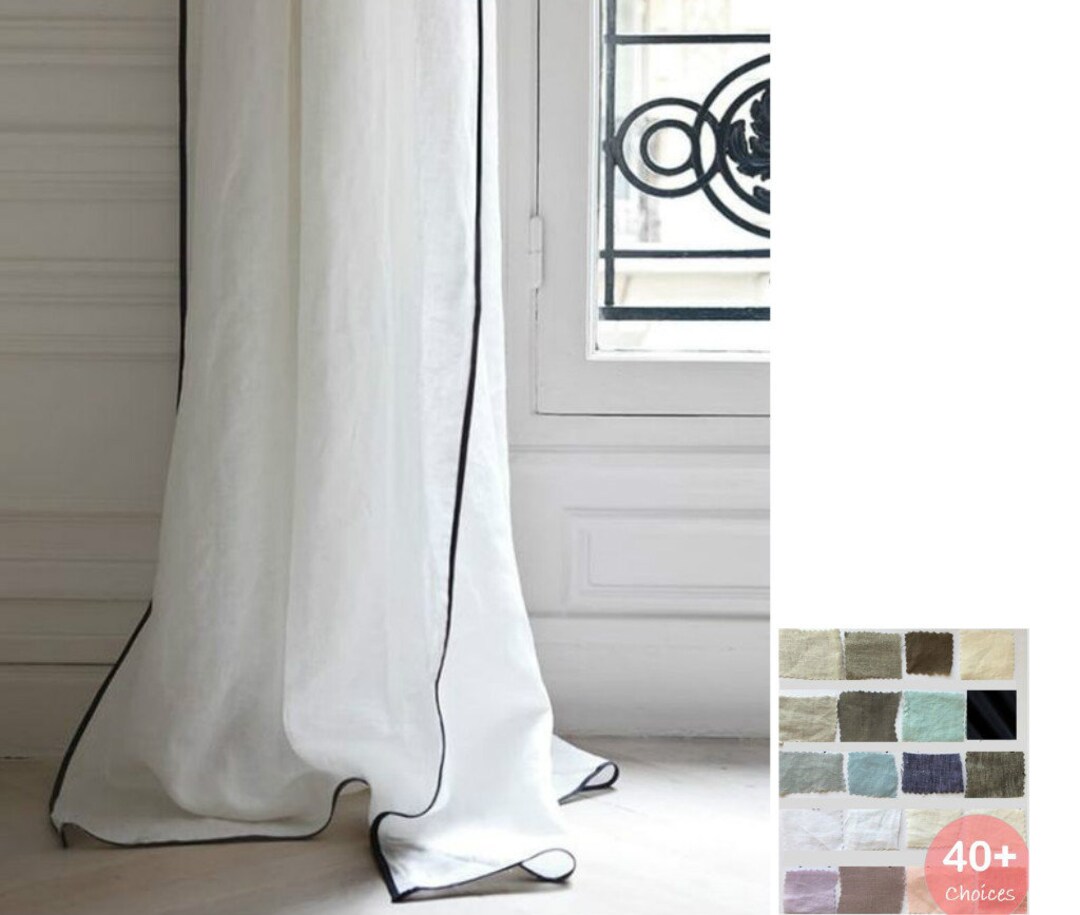Linen Curtain Finished With Trim 40 Colors Mix And Match Etsy